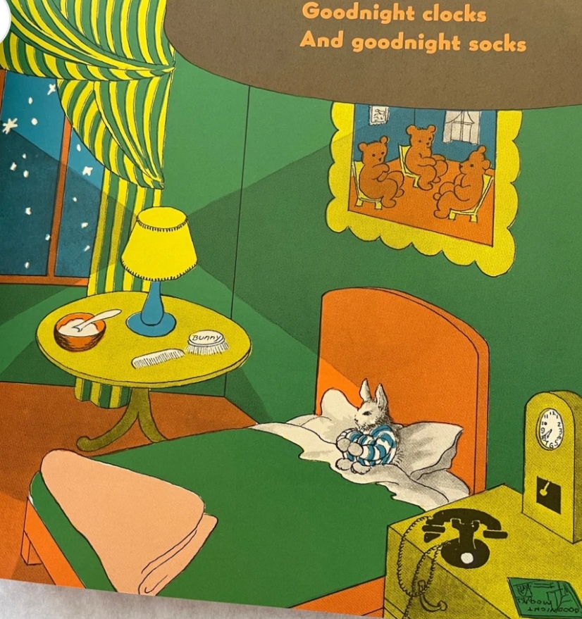 Like the scent of fresh mint, the colors of Goodnight Moon, bold orange and blue, send me through my own years. Reading the board book with my daughters, all grown now, and yet within my minds eye, close enough to touch. And with my own mother, being the bunny in the striped pajamas who has to say goodnight to all of the very important things he sees around him. The bowl, the painting, the old lady. I am closer now to being the Old Lady whispering hush, but I remember who I was, in hints and glances with the scent of mint and in the pages of a beloved book.